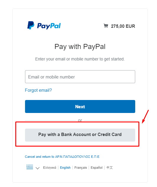 • Κάντε την πληρωμή σας απευθείας σ’ έναν από τους τραπεζικούς μας λογαριασμούς. Χρησιμοποιήστε το κωδικό της παραγγελίας στην αιτιολογία της πληρωμής. Η παραγγελία σας δεν θα εκτελεστεί μέχρι να γίνει η εξόφλησή της.