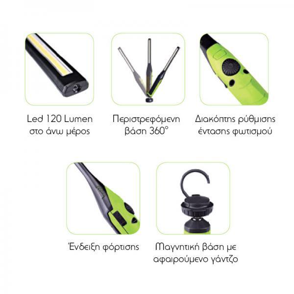 Φακός επαναφορτιζόμενος συνεργείου λεπτός 600 lum