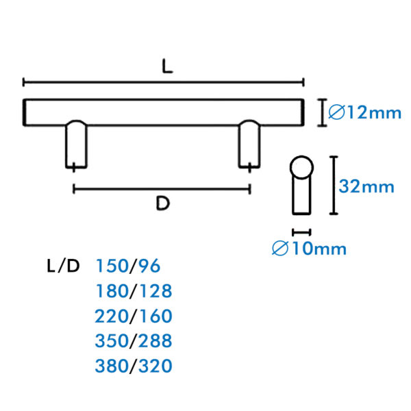 Πόμολο μπάρα μεταλλικό σατινέ ∅12